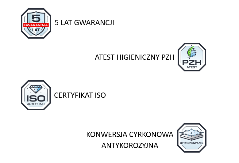 Jakość wykonania danej szafy metalowej potwierdzają otrzymane certyfikaty i atesty. Ponadto oferujemy pięcioletnią gwarancję!