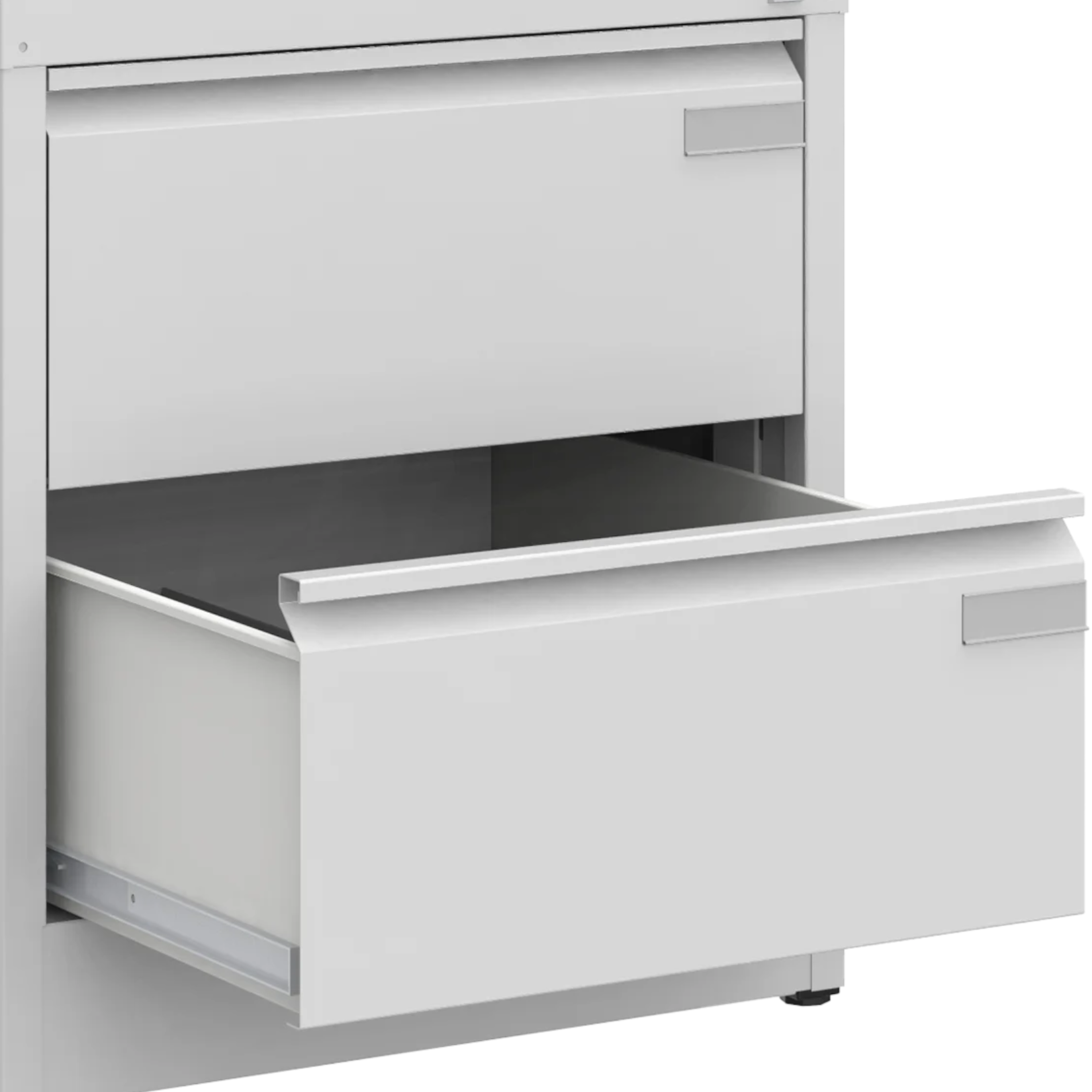 Szuflady zostały wykonane z prowadnicmi kulkowymi o podwójnym wysuwie, z zabezpieczeniem przed wypadaniem. Szuflady ryglowane centralnie, wyposażone w blokadę wysuwu co umożliwia wysuwanie tylko jednej szuflady. Max. obciążenie szuflady wynosi 50 kg, a jej wysuw to aż 86%.