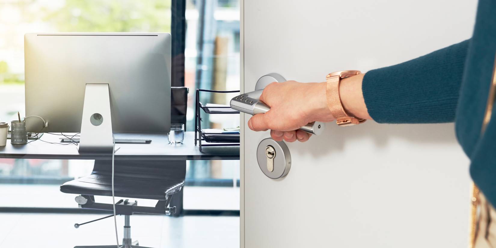 Zyskaj pewność, że do konkretnych pomieszczeń dostęp mają jedynie upoważnieni pracownicy. Funkcja automatycznego blokowania zapewnia, że pomieszczenie pozostaje zabezpieczone bez konieczności wprowadzania kodu PIN przy każdym opuszczeniu. Code Handle nie wymaga żadnych modyfikacji w istniejących drzwiach, tylko sporadycznego serwisu. Dodatkowo, żywotność baterii wynosi aż do 30 000 cykli otwarcia i zamykania.